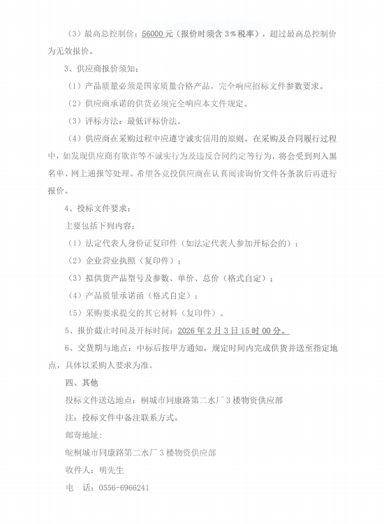 客栈备货质料(水泥管线桩)采购项目询价通告